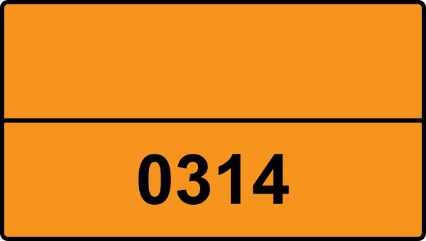 UN 0314 är UN-numret för ÖVERFÖRINGSTÄNDARE, ett farligt gods klassificerat i ADR klass 1. UN-nummer används internationellt för att identifiera farliga ämnen vid transport.