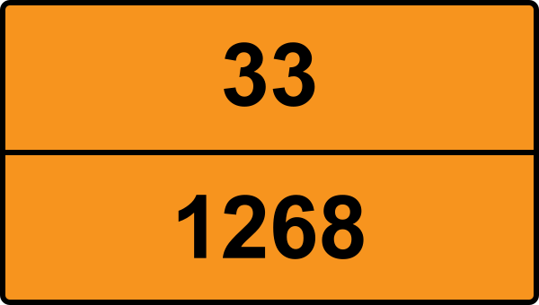 UN 1268 kräver faroetiketter för ADR klass 3. Etiketten ska vara minst 100×100 mm och placeras synligt på kollit. Se detaljerad information ovan för exakta etiketter.