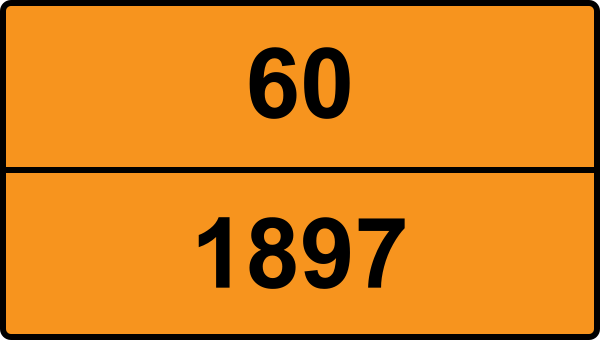 UN 1897 kräver faroetiketter för ADR klass 6.1. Etiketten ska vara minst 100×100 mm och placeras synligt på kollit. Se detaljerad information ovan för exakta etiketter.