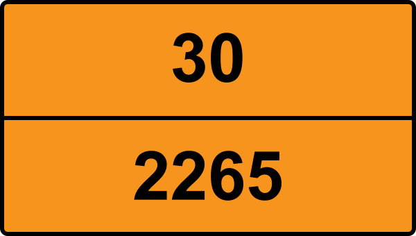 UN 2265 kräver faroetiketter för ADR klass 3. Etiketten ska vara minst 100×100 mm och placeras synligt på kollit. Se detaljerad information ovan för exakta etiketter.