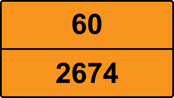 UN 2674 kräver faroetiketter för ADR klass 6.1. Etiketten ska vara minst 100×100 mm och placeras synligt på kollit. Se detaljerad information ovan för exakta etiketter.